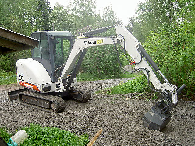 Kaivinkoneena toimii bobcat 334 jonka tarkemmat tiedot ovat kaivuussyvyys 3,4m, ulottuvuus 4,5m, koneen leveys 1,55m ja minimi työskentely korkeus n. 2,5m. Löytyy myös iskuvasara koneeseen.