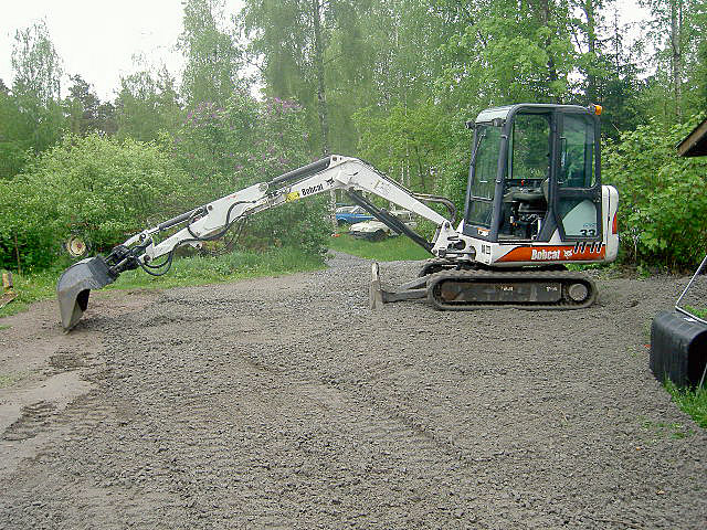 Kaivinkoneena toimii bobcat 334 jonka tarkemmat tiedot ovat kaivuussyvyys 3,4m, ulottuvuus 4,5m, koneen leveys 1,55m ja minimi työskentely korkeus n. 2,5m. Löytyy myös iskuvasara koneeseen.